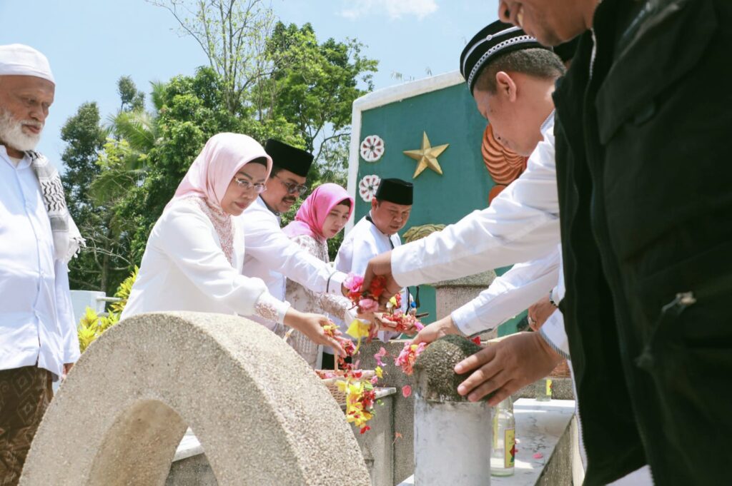 BUPATI Serang Ratu Tatu Chasanah melakukan ziarah ke makam Bupati Serang yang pertama, Brigjen KH Syam’un di Desa Kamasan, Kecamatan Cinangka, Senin (7/10/2024).