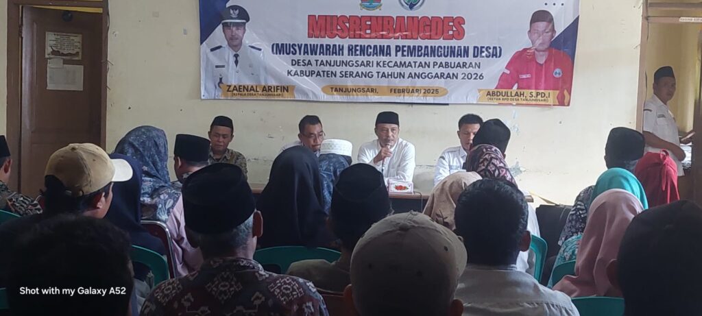 Rabu. 5 Februari 2025 Desa Tanjungsari, Kecamatan Pabuaran, Kabupaten Serang, menyelenggarakan Musyawarah Rencana Pembangunan Desa (Musrenbangdes) bertempat di Aula Kantor Desa Tanjungsari. Musyawarah ini bertujuan untuk menyusun Rencana Pembangunan Tahun 2026 yang melibatkan partisipasi aktif warga desa, RT RW, tokoh masyarakat, serta unsur-unsur terkait lainnya.